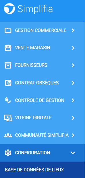 1️⃣Cliquez sur l'onglet "Configuration" puis "Base de données de lieux" dans le menu principal.
