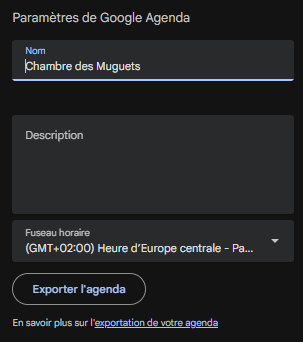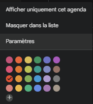 4️⃣Une fois votre calendrier créé, passez votre souris sur le calendrier, cliquez sur les 3 petits points, puis sur “Paramètres”.