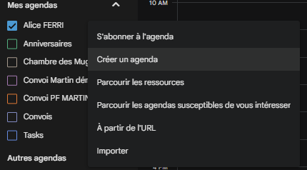 - En bas à gauche, sous “Mes Agendas”, cliquez sur le “+” puis sur “Créer un Agenda”