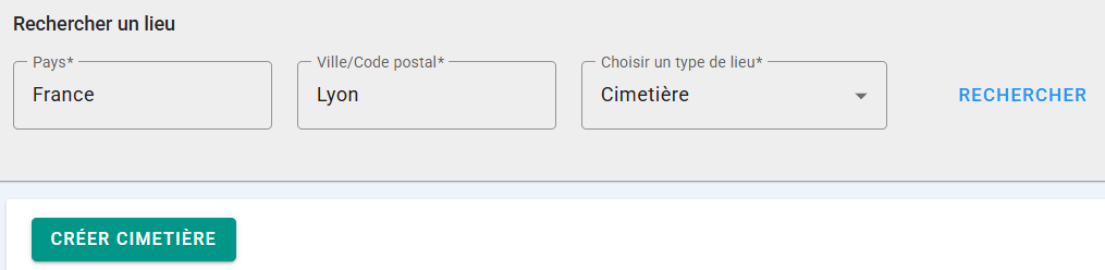 3️⃣ Il faut rechercher le lieu qu’on veut créer afin de vérifier qu’il n'existe pas encore. Pour cela, il faut indiquer la ville ou le code postal et le type de lieu.