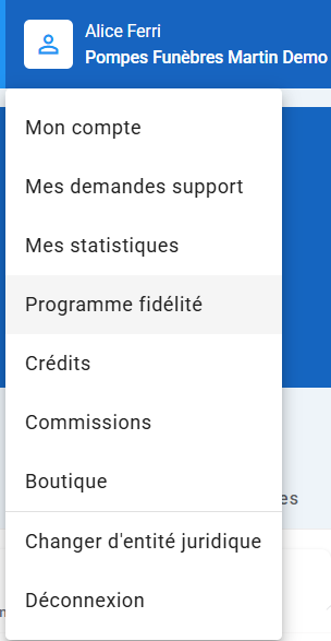 2️⃣ Dans le menu déroulant, cliquer sur "Programme fidélité".