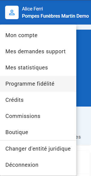 2️⃣Dans le menu déroulant, cliquer sur "Programme fidélité".