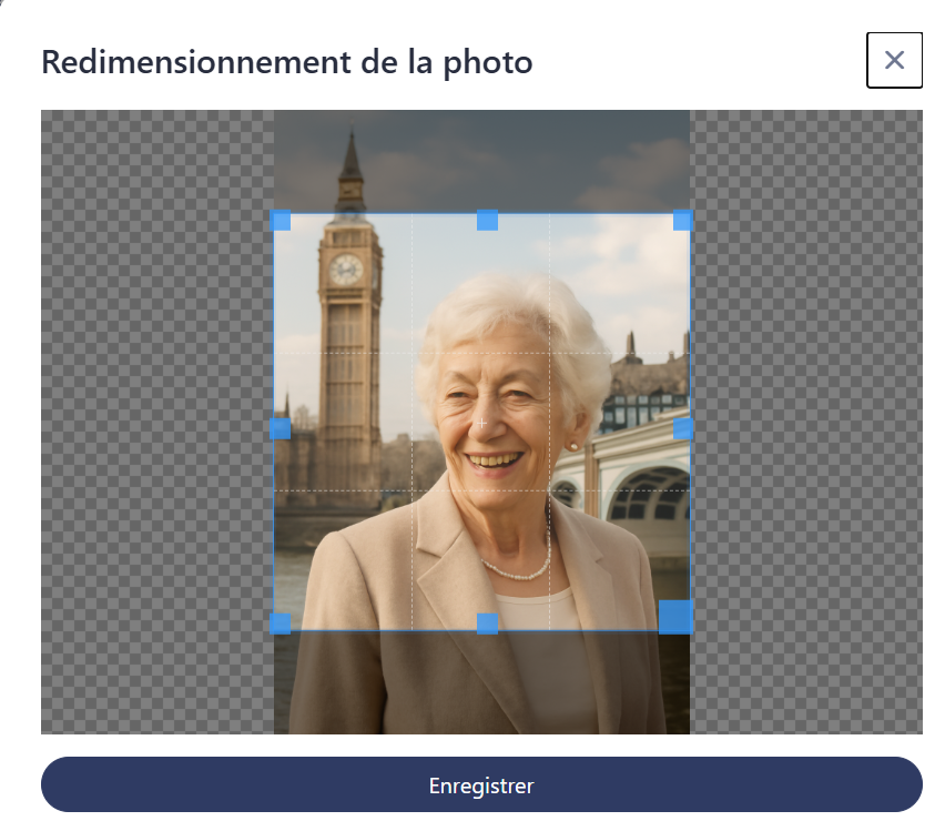 3️⃣ Recadrer la photo si nécessaire, sinon cliquer sur "Sauvegarder"