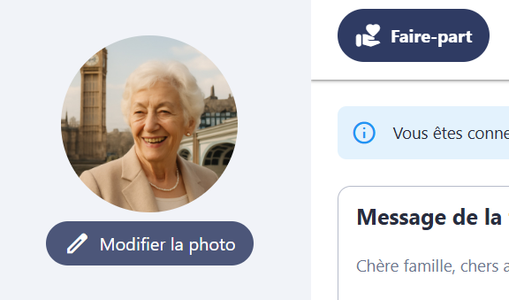 4️⃣ La photo est ajoutée ! Elle se mettra à jour sur l'Espace Hommage au bout de 15 minutes.