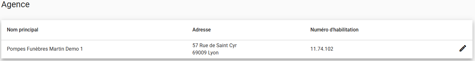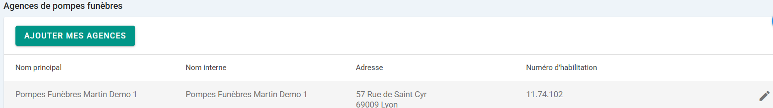 2️⃣Cliquez sur le petit crayon à droite de l'agence à modifier.