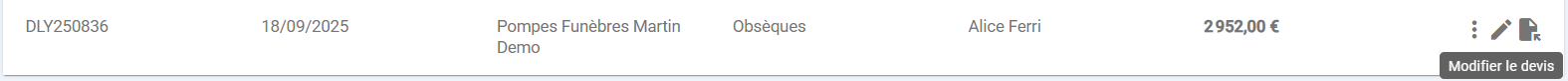 1️⃣Pour commencer rendez-vous sur le devis à modifier en cliquant sur le stylo au bout de la ligne