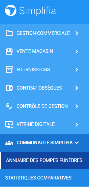 La démarche est simple, il vous suffit de cliquer sur "Communauté Simplifia" pour accéder à l'annuaire des Pompes Funèbres.