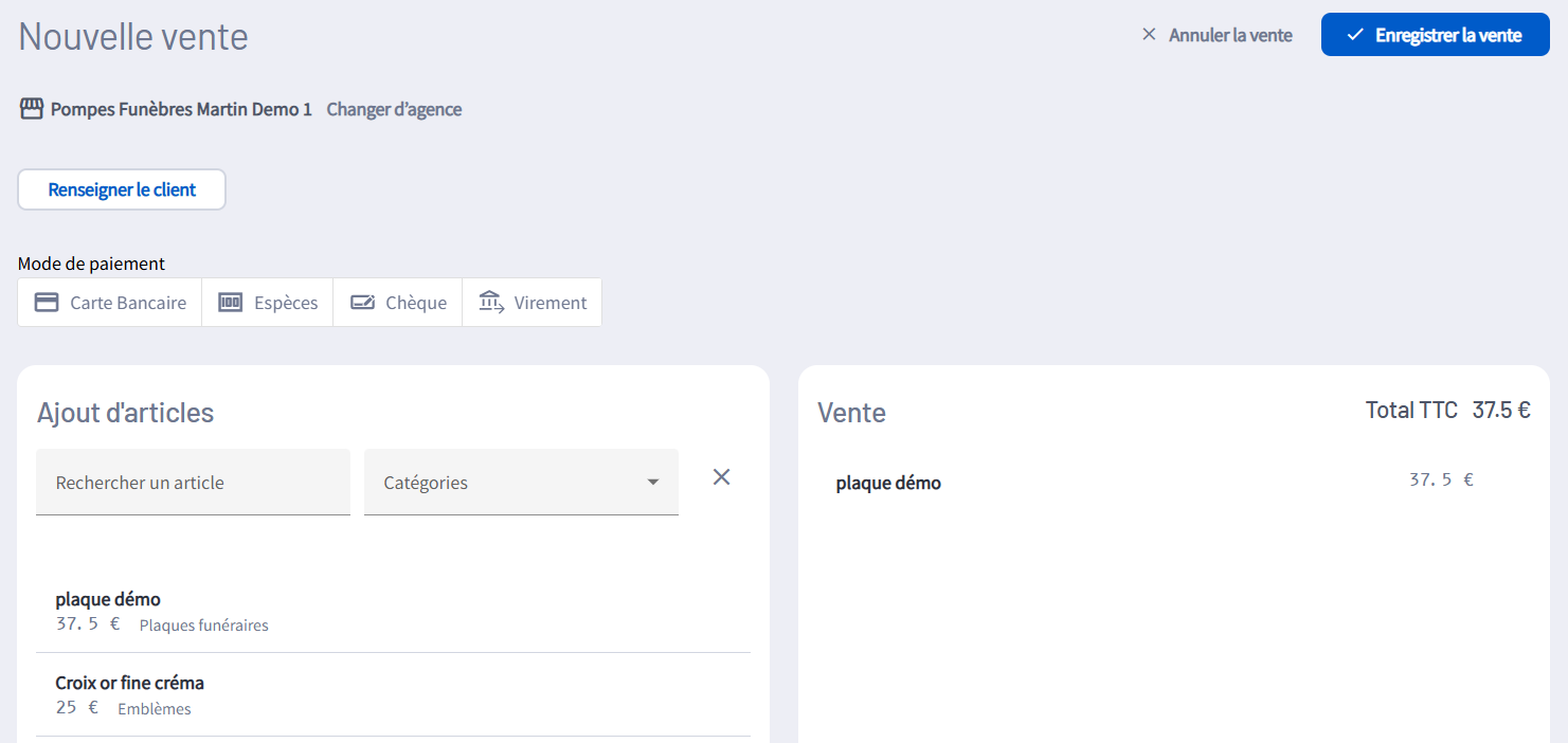 - Vendre les articles de votre catalogue et de votre magasin : fleurs, plaques, médaillon...