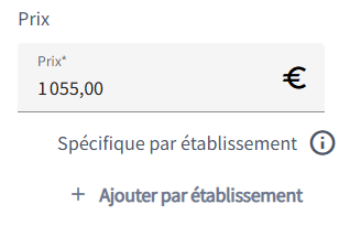 💡Un prix peut être différent en fonction d'un établissement. Pour l'indiquer, cliquez sur "Ajouter par établissement".