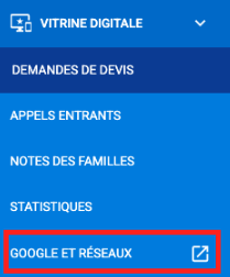 2️⃣Rendez-vous dans l'onglet "Vitrine Digitale" puis cliquez sur "Google et Réseaux".