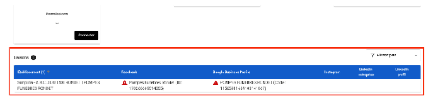 Une fois la connexion terminée, vérifiez que le triangle rouge a disparu et que la liaison est bien faite. Vérifier également que chaque fiche Google est bien reliée à son agence.