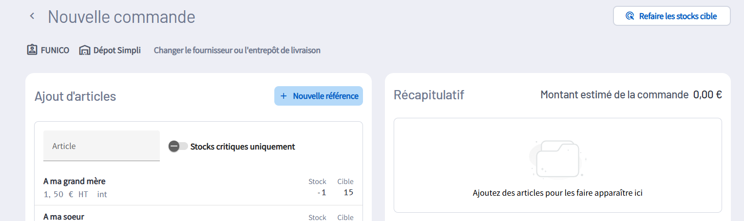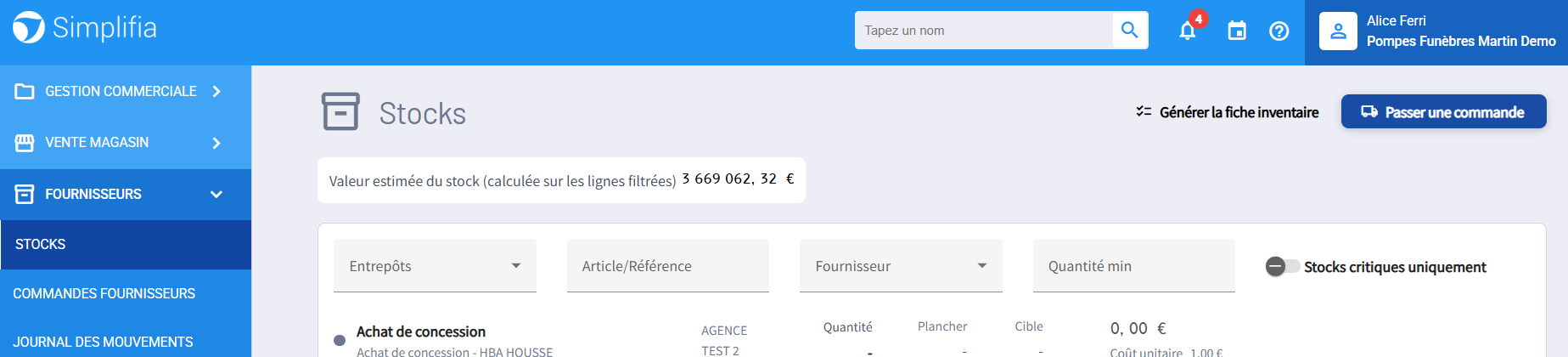 1️⃣ Rendez vous sur la page Fournisseurs/stocks.