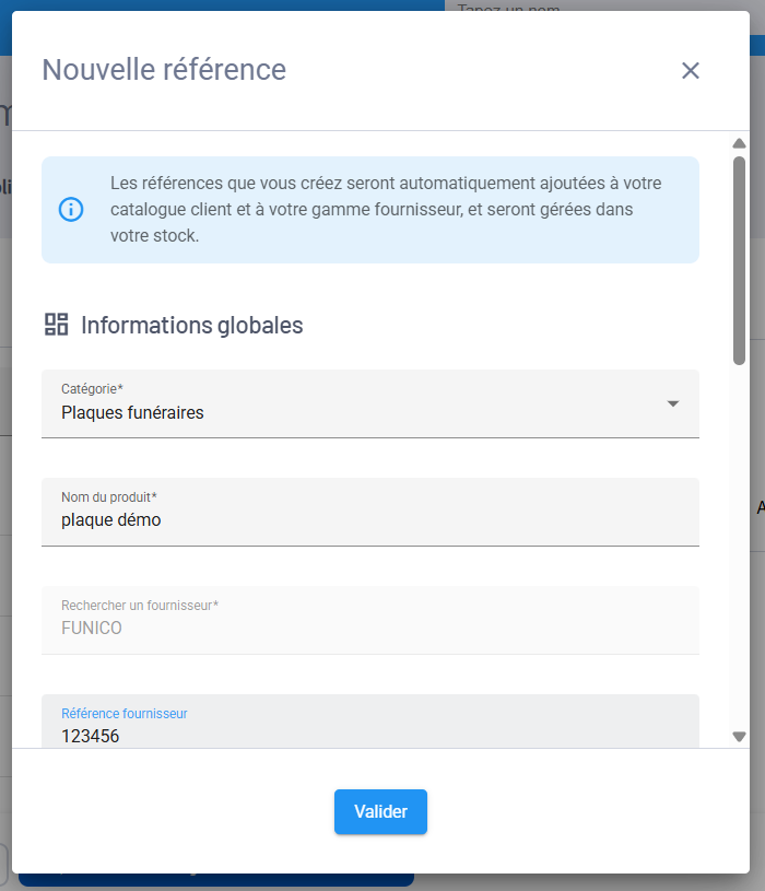 Vous êtes en train de créer à la fois une référence dans votre catalogue et dans votre liste de produits fournisseurs.