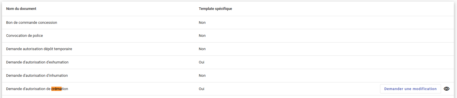 Cherchez le document qui vous concerne et cliquez sur "Demander une modification"