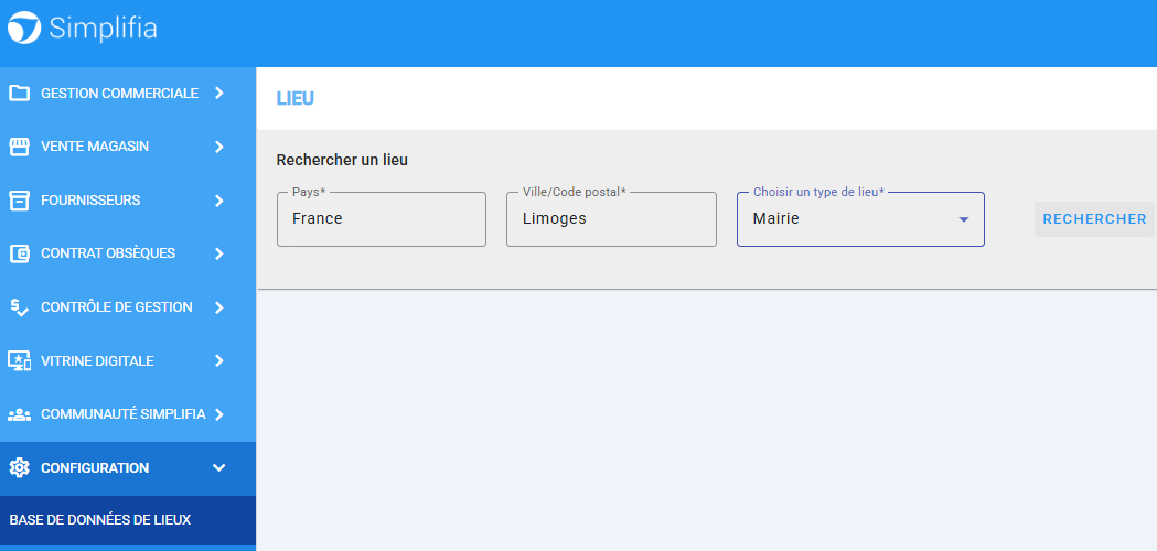 Si le document est propre à une structure (mairie, crématorium...), rendez-vous dans "Configuration --> Base de donnée de lieux"