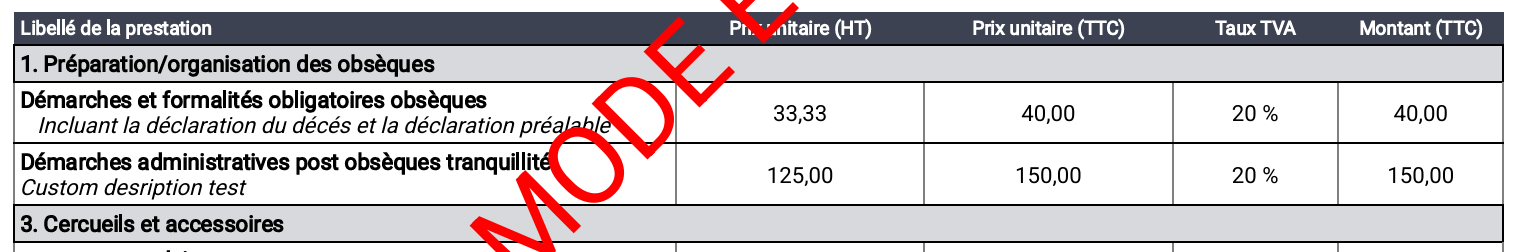 Contrairement aux règles liées au devis et à la commande, le format 2 colonnes n'est pas applicable sur la facture. C'est la norme NF525 qui est prioritaire sur le format de facture.