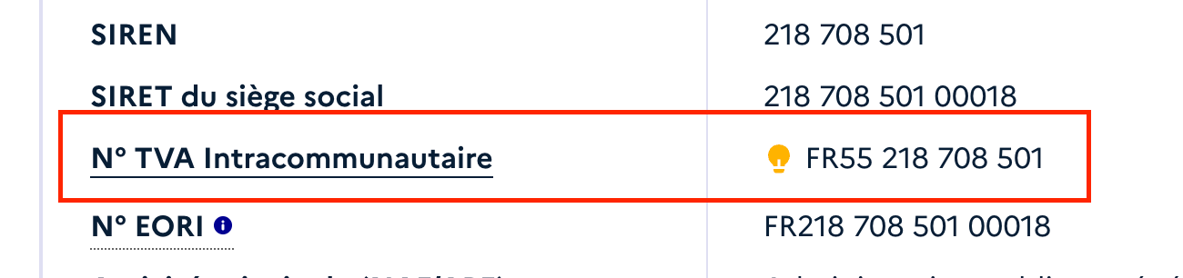 4️⃣Repérer la ligne « N° TVA intracommunautaire » et copier le numéro indiqué