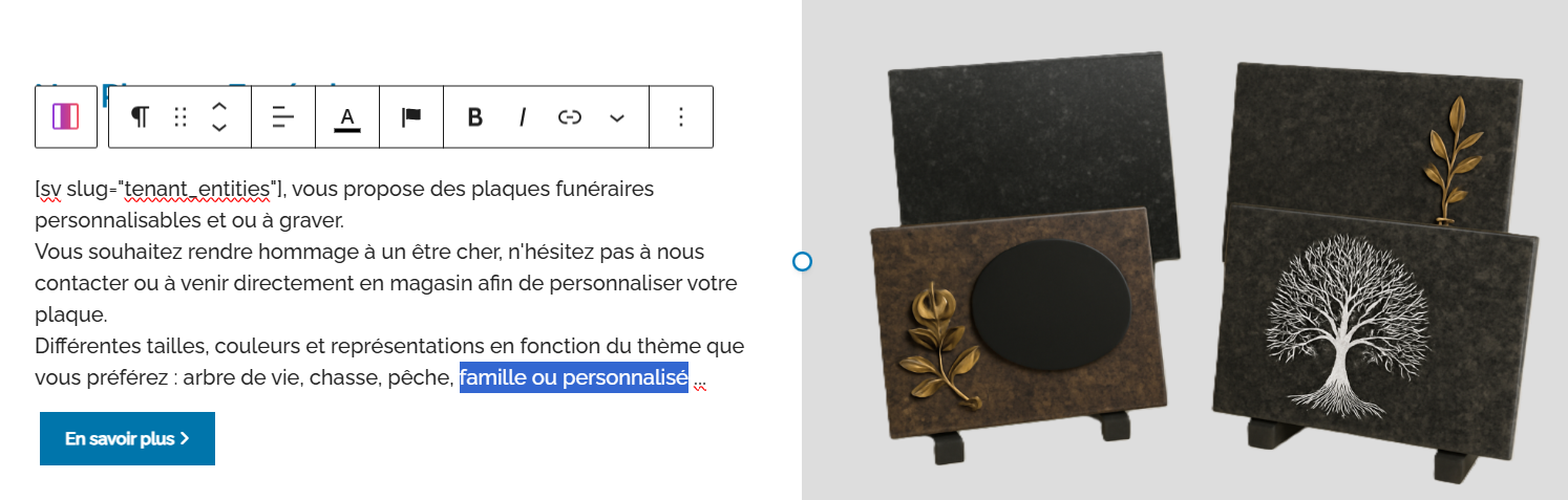 Une fois sur l’éditeur, trouvez le bloc de texte concerné et commencez à éditer le texte.