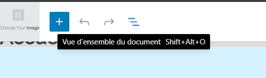 Certains blocs ne peuvent pas êtres édités directement car il comportent une protection supplémentaire. Pour rentrer dans le détail d'un bloc, cliquez sur le menu "vue d'ensemble du document" en haut de votre écran pour montrer l'ensemble des composant présents dans votre page.