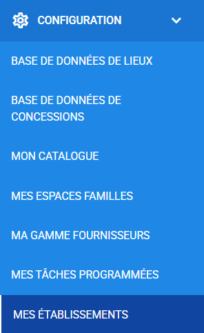 1️⃣ Cliquez sur "Configuration --> Mes établissements".