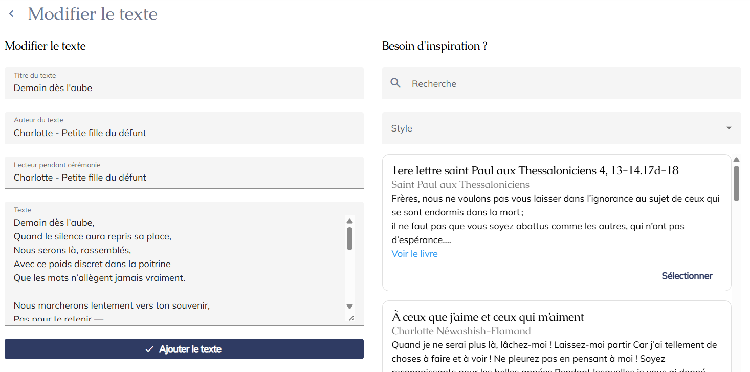 2️⃣Commencez à ajouter vos textes et musiques que vous allez utiliser lors de la cérémonie.