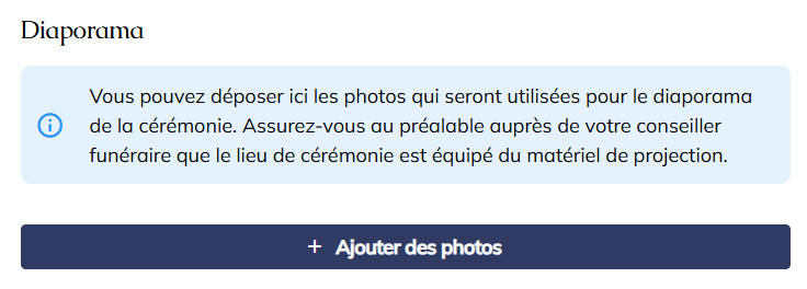 Vous souhaitez partager lors de votre cérémonie un diaporama mémorable permettant de mettre à l'honneur votre défunt?