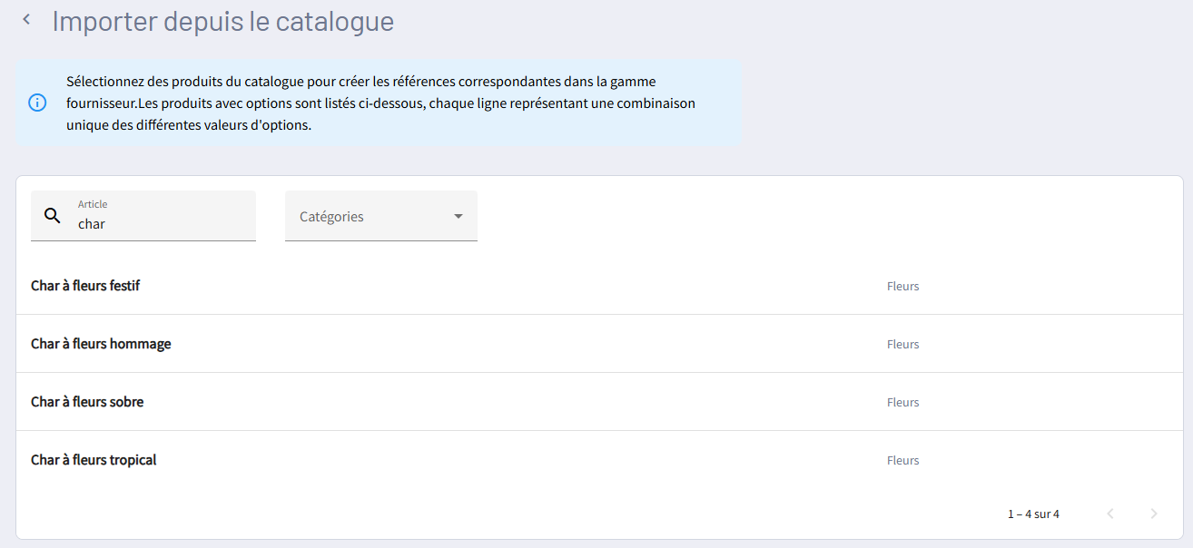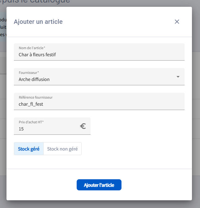 Lorsque votre premier article et votre fournisseur est enregistré, continuez l'ajout de vos références en cliquant sur le bouton "Importer depuis le catalogue".