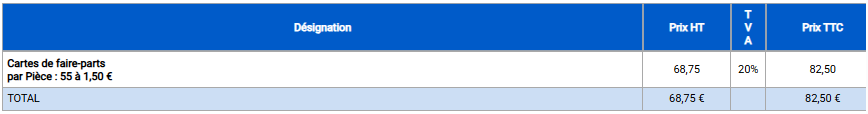 Dans le détail de votre devis, vous trouverez le prix unitaire de la pièce et le prix TTC global.