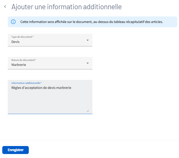 2️⃣Dans informations additionnelles sur les documents commerciaux, cliquez sur "Ajouter une information".